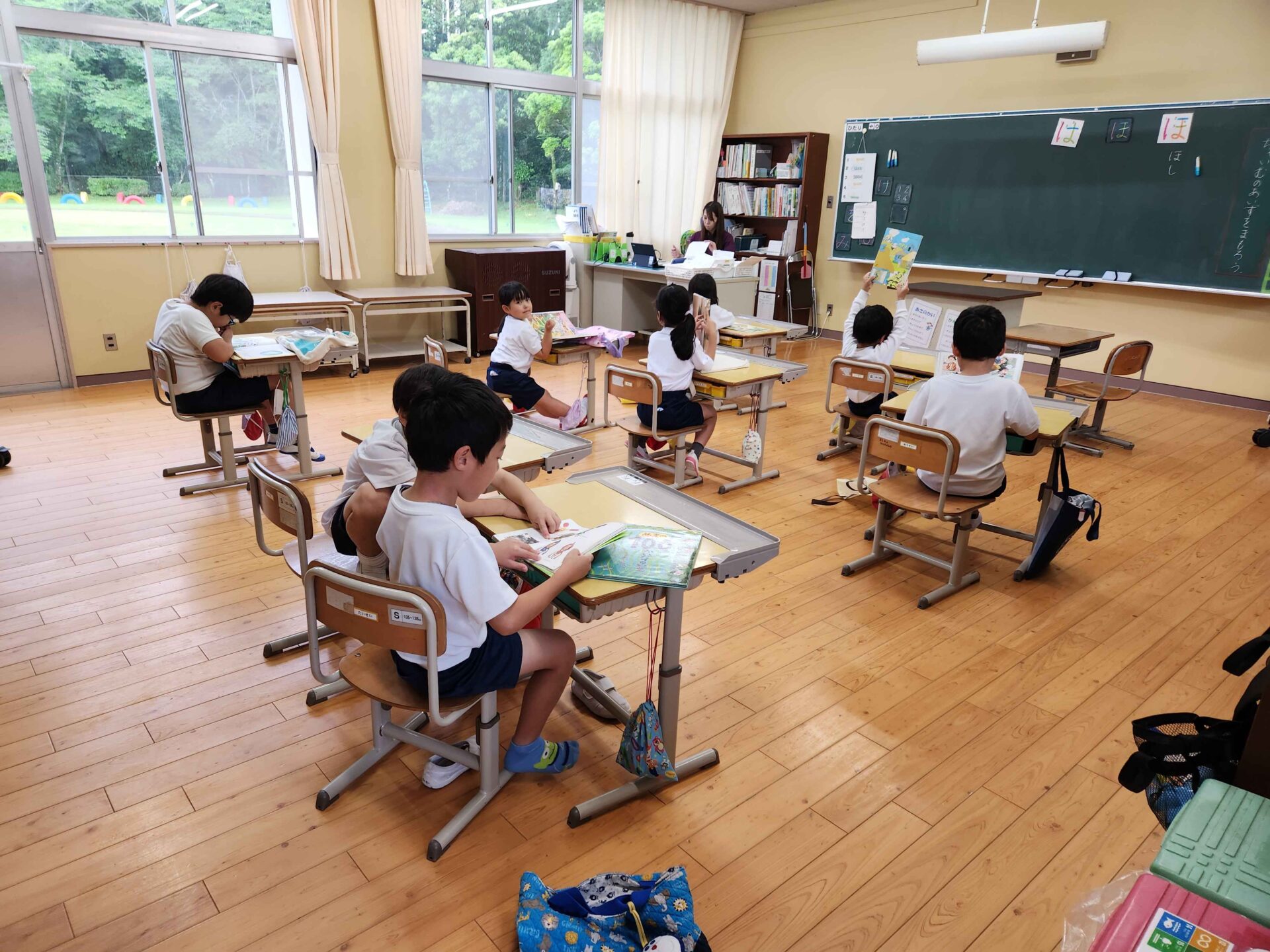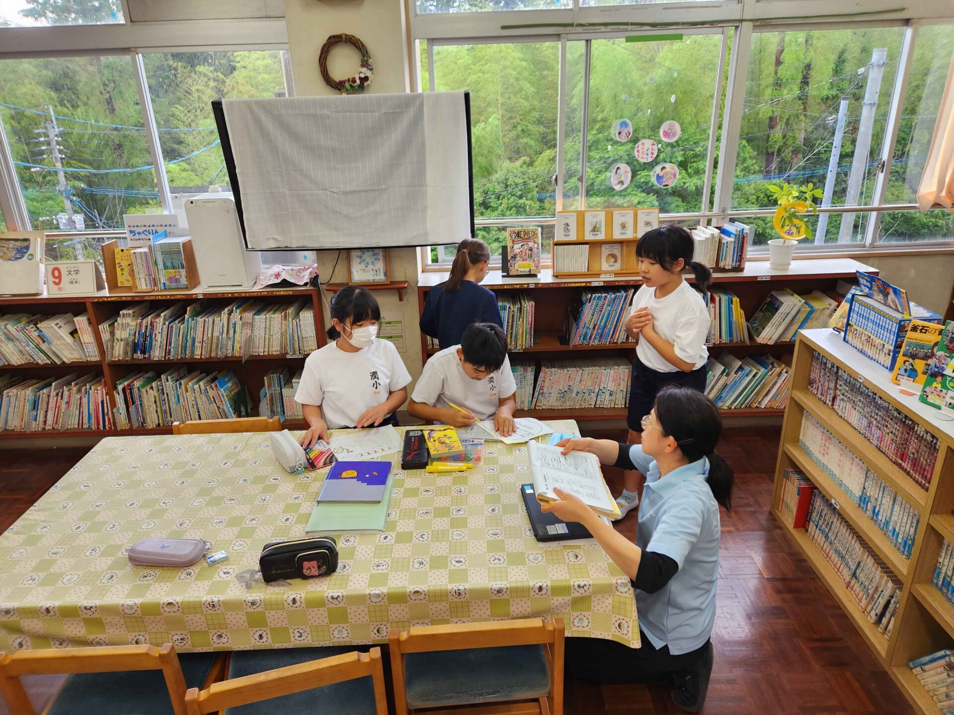 今日の昼活動は委員会活動でした。3つの委員会に分かれて頑張っています。低学年はこの時間に読書を行っています。タブレットを巧みに使って委員会を進めていました。