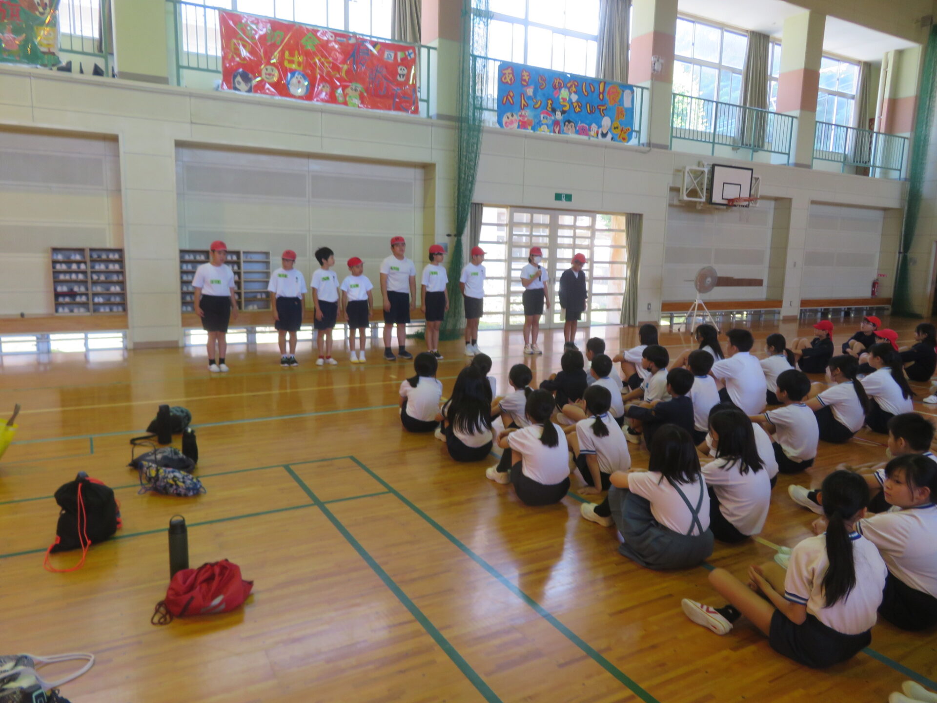 5・6年生の交流学習がありました。今年は、安楽小におじゃましました。1時間は外国語、もう1時間は体育を一緒に行いました。潤ケ野小は、はじまりの式の進行と、6年生の準備体操を担当しました。はじめは大人数にちょっと圧倒された様子もありましたが、徐々に慣れ、交流を楽しむことができました。