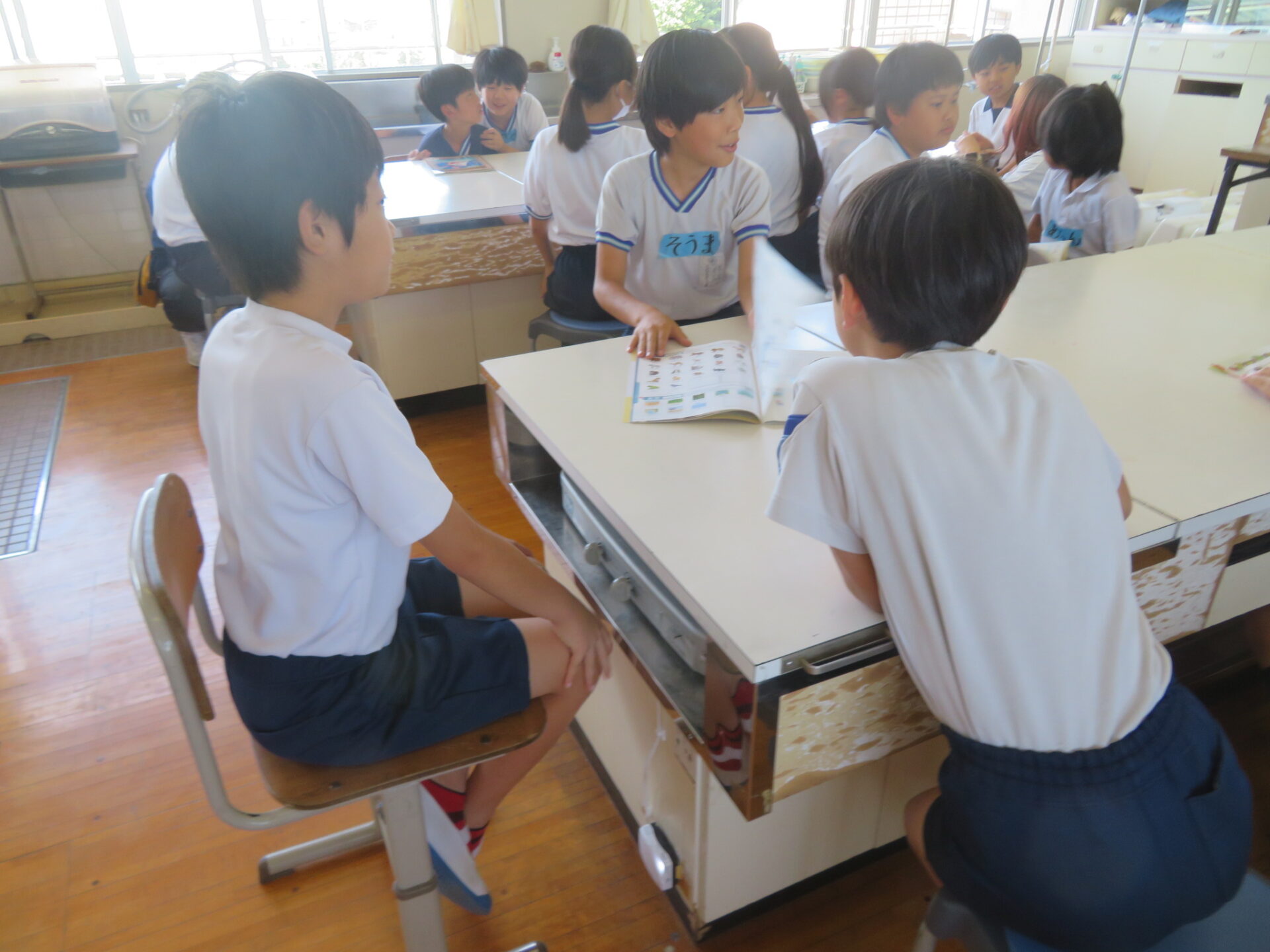 5・6年生の交流学習がありました。今年は、安楽小におじゃましました。1時間は外国語、もう1時間は体育を一緒に行いました。潤ケ野小は、はじまりの式の進行と、6年生の準備体操を担当しました。はじめは大人数にちょっと圧倒された様子もありましたが、徐々に慣れ、交流を楽しむことができました。