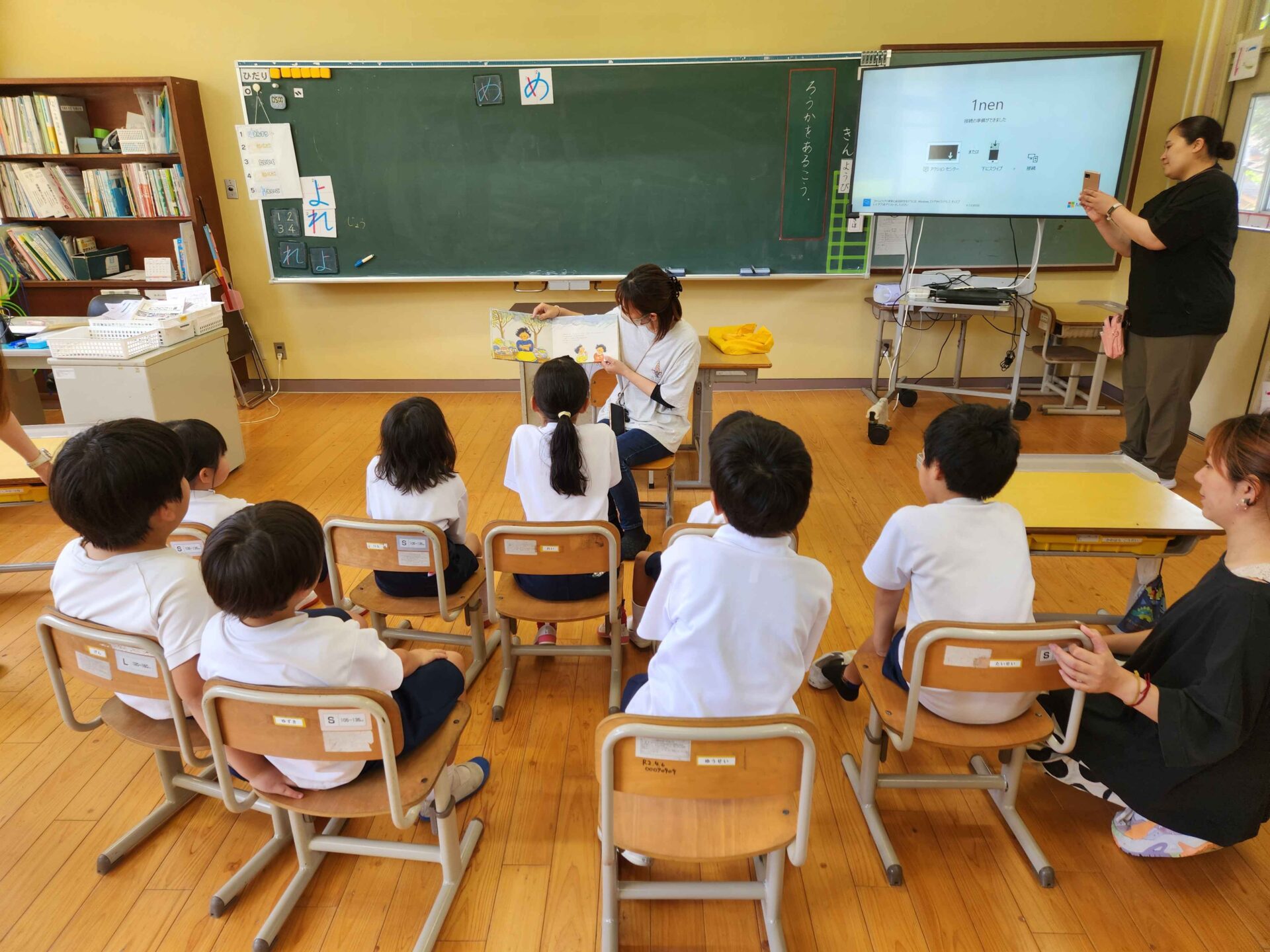 読み聞かせグループ「ウスカワゴロモ」さんが、3冊の本を読んでくださいました。どの本も、おもしろい内容で、1・2年生がとても喜びました。5時間目の授業のために来られていた外国語アシスタントの先生にも読んでいただき、特別な日となりました。