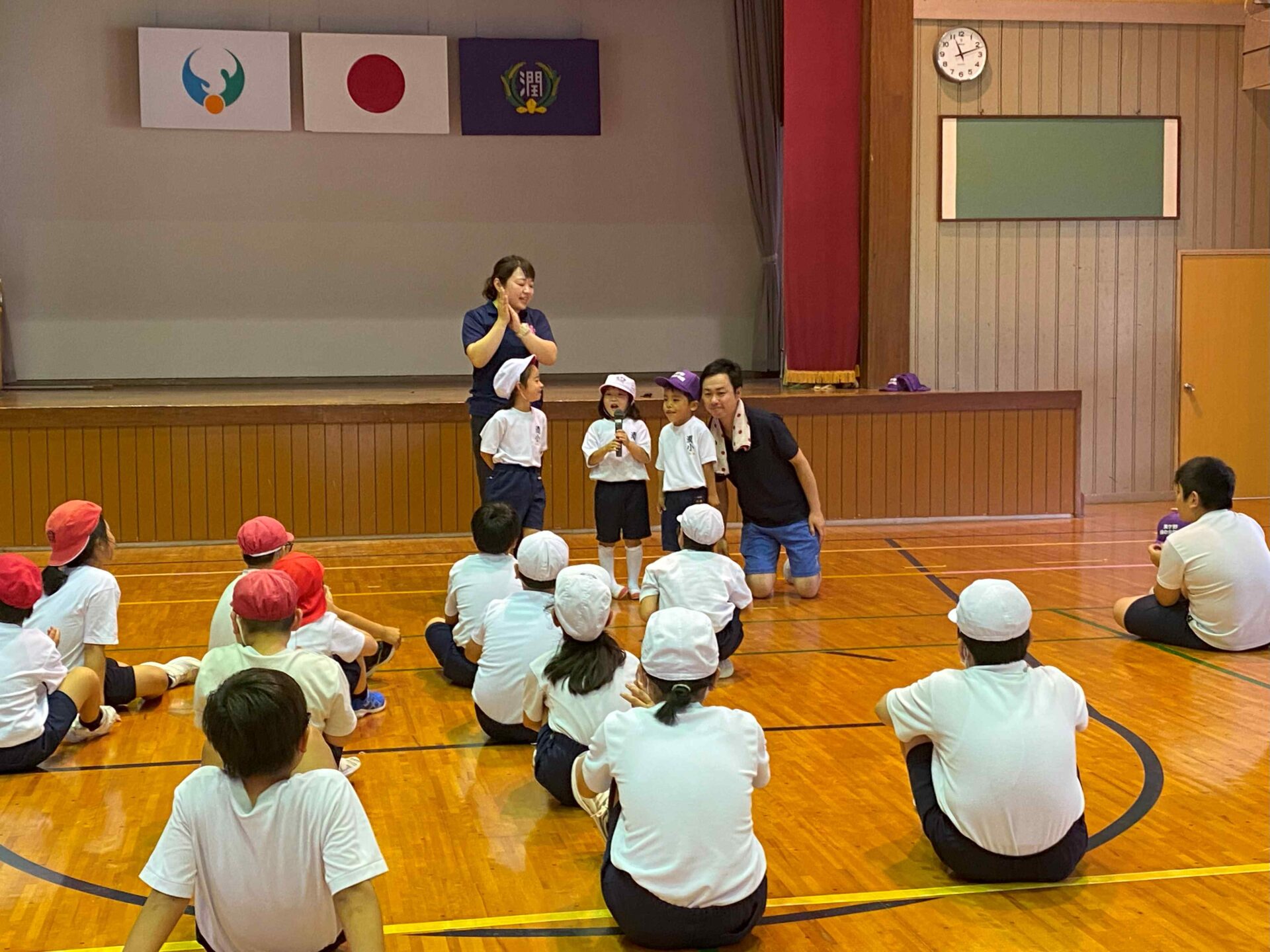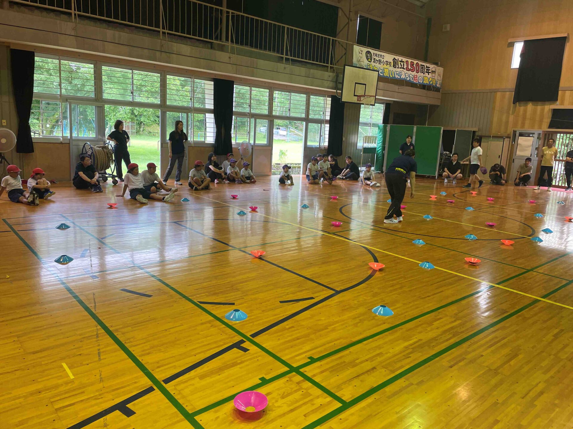 春のミニ運動会「つなひき大会」は、赤組が優勝、「マーカー返し」は、むらさき組が優勝。1年生の代表が手をあげて感想を発表してくれ、嬉しかったです。大人は、翌日、筋肉痛で動けなかったとか……。