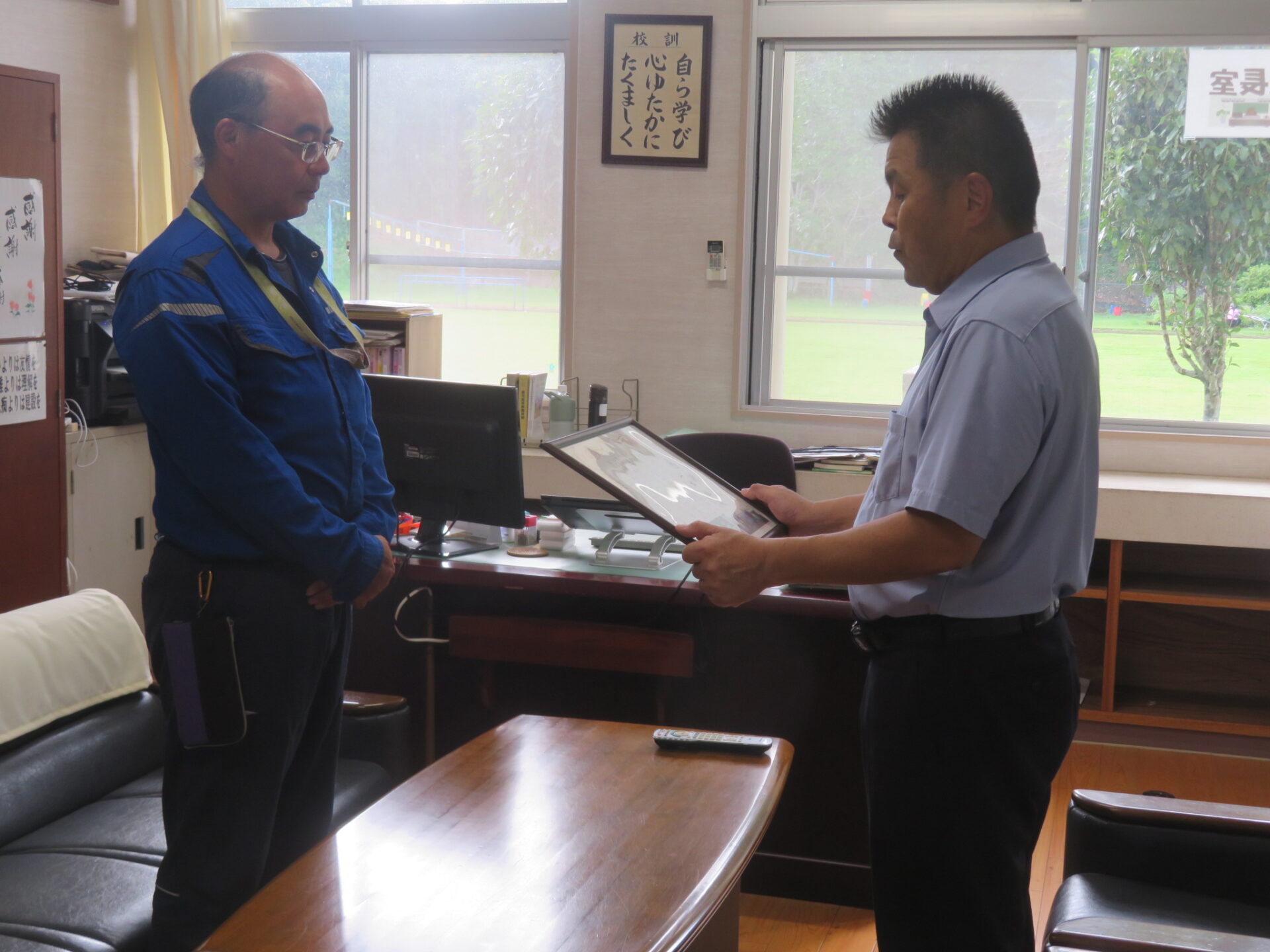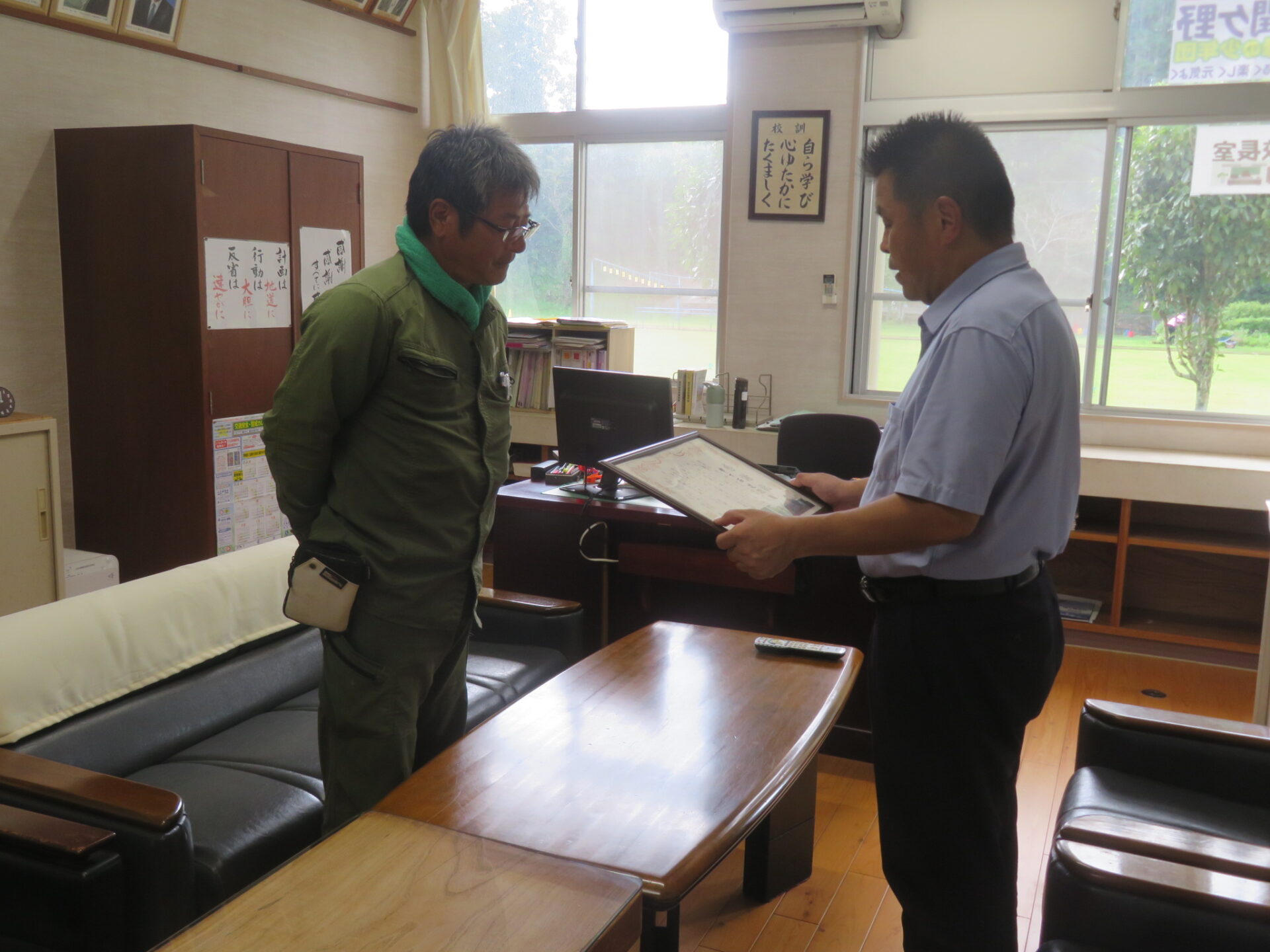 9月11日に学校のボランティア作業を行っていただいた「山本組」「半下石建設」「加世田建設」さんに、感謝状を贈りました。