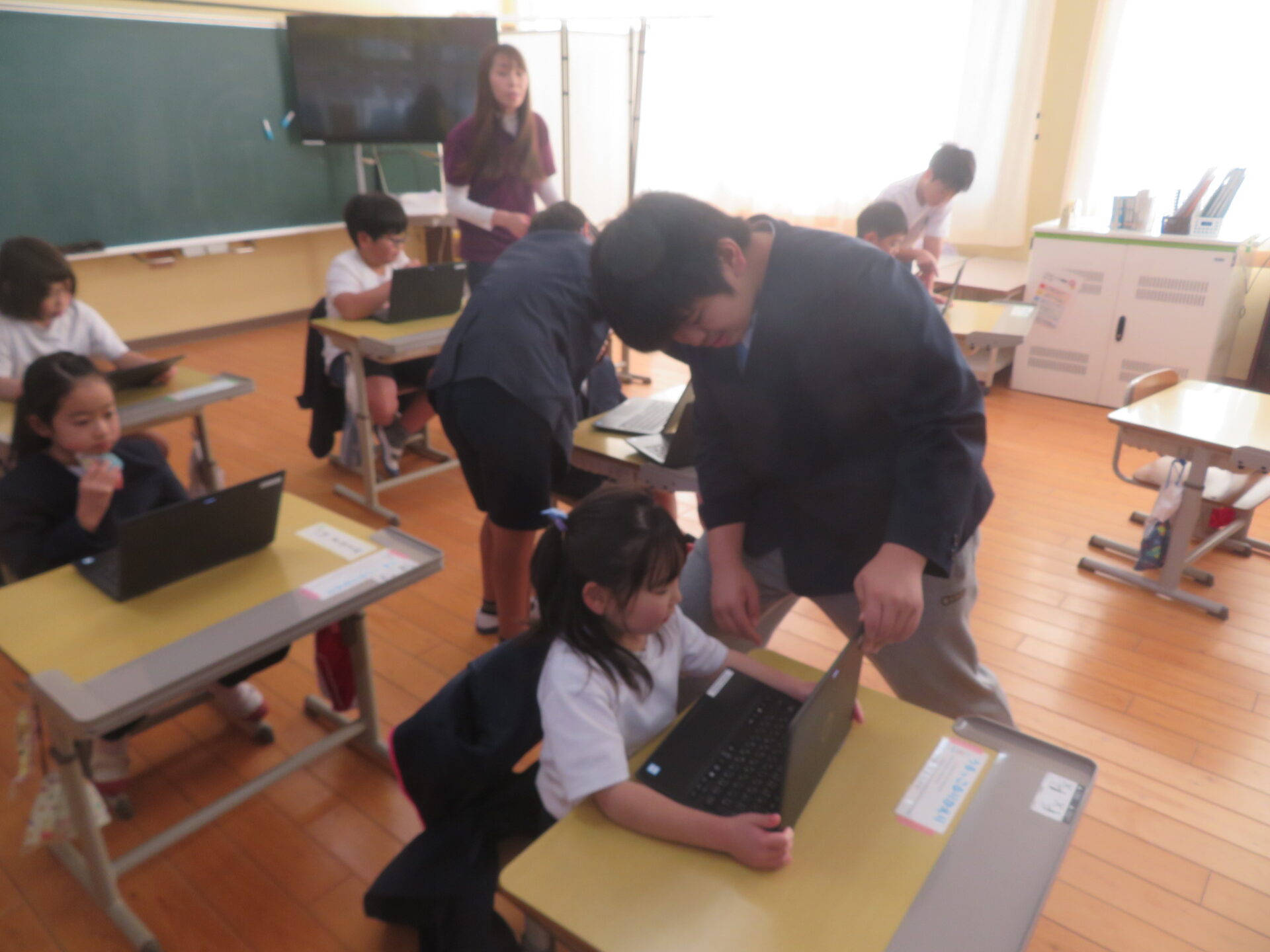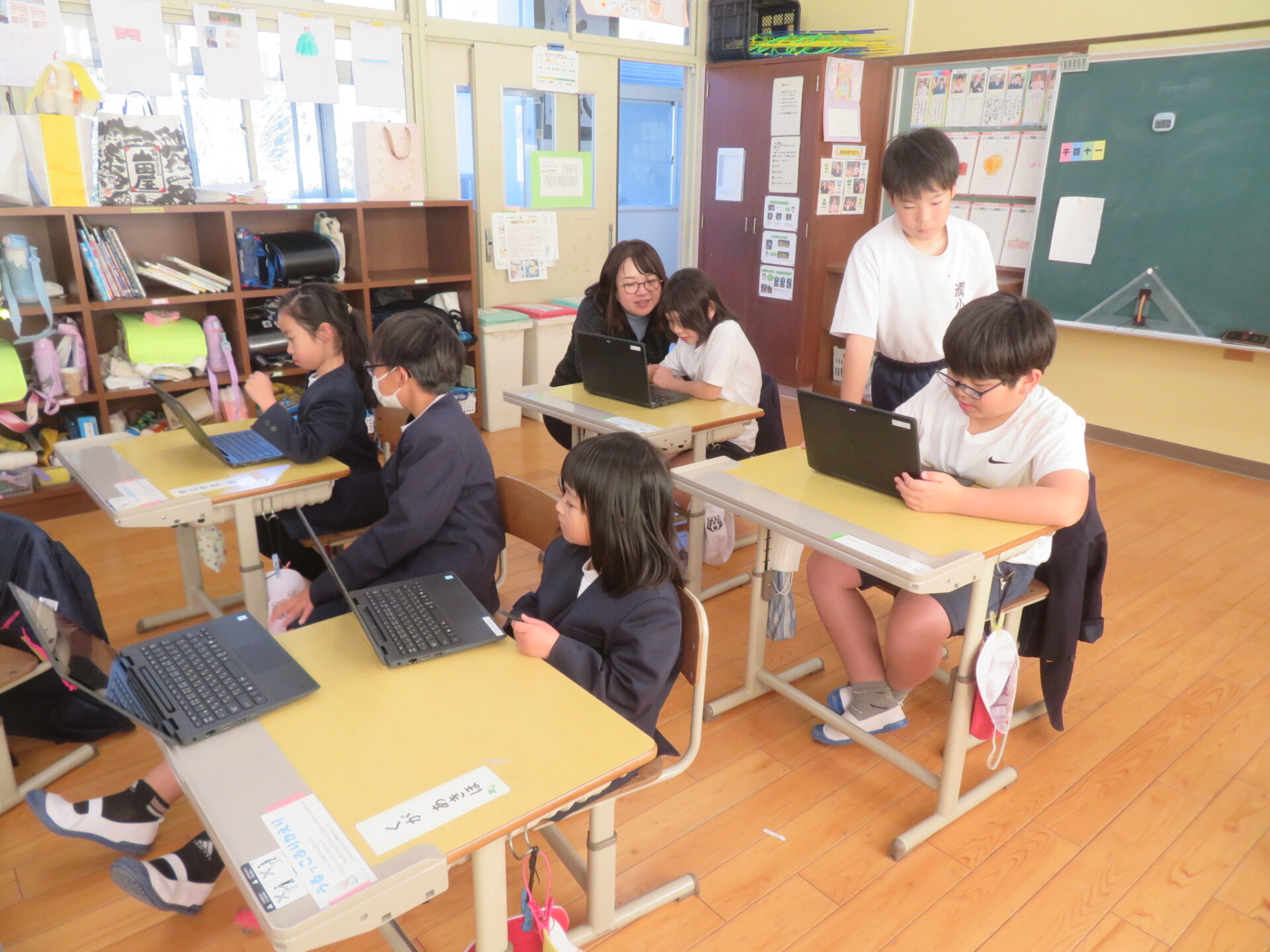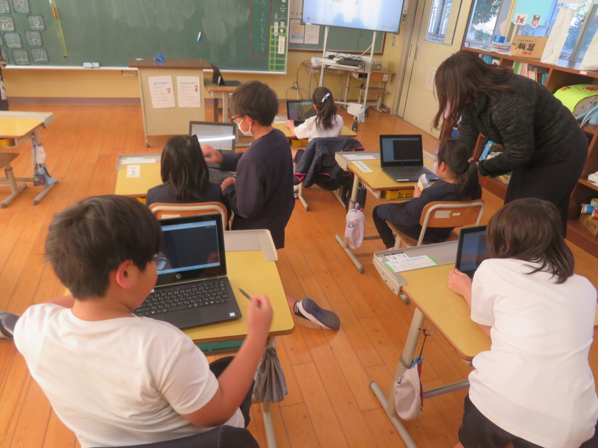 1月から代表委員会の反省を一人一人タブレットで入力することになりました。1年生は高学年に教えてもらいながら、タッチペンを使って入力しました。