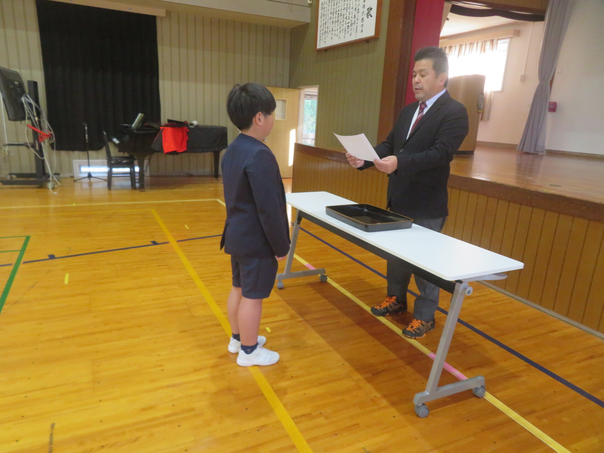 「税を考える週間」作品展 硬筆の部 で入選した児童の表彰を行いました。また、作品を提出した児童には参加賞の消しゴムが配られました。