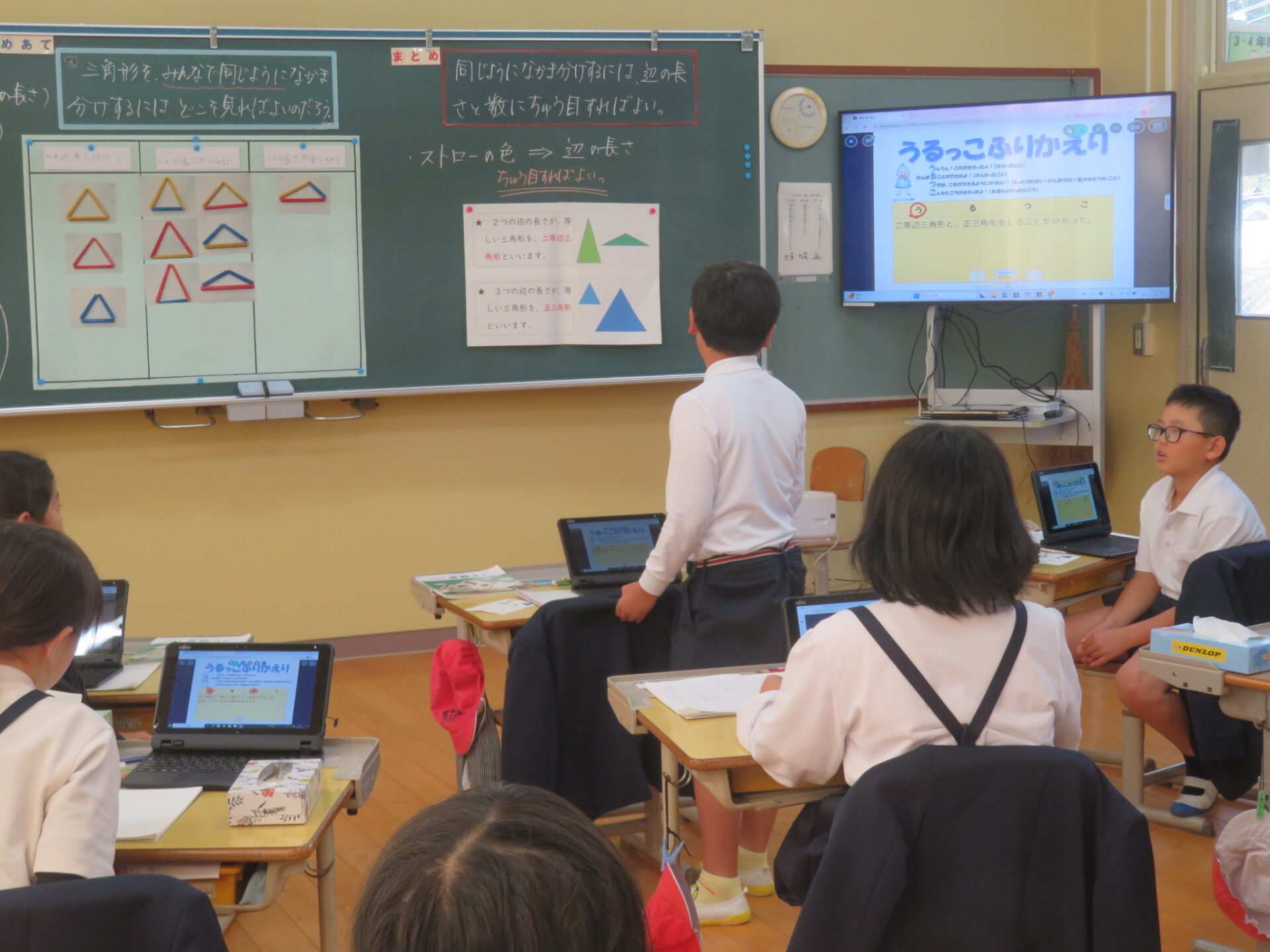 3・4年生の算数の学習で、研究授業を行いました。他の学校や教育委員会からも先生達が来られ、いつもより緊張感のある様子でしたが、主体的に学び、自分の考えをどんどん発表していました。