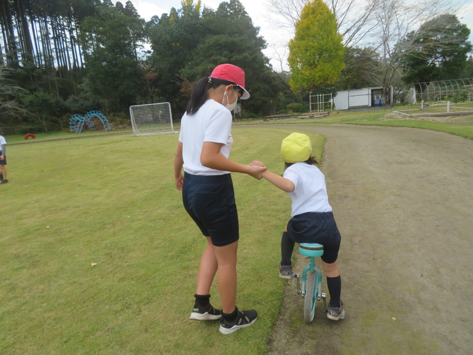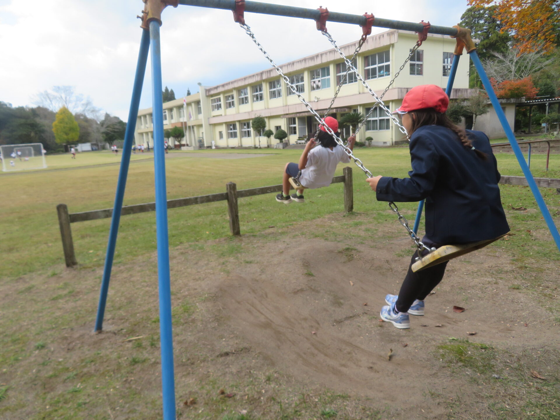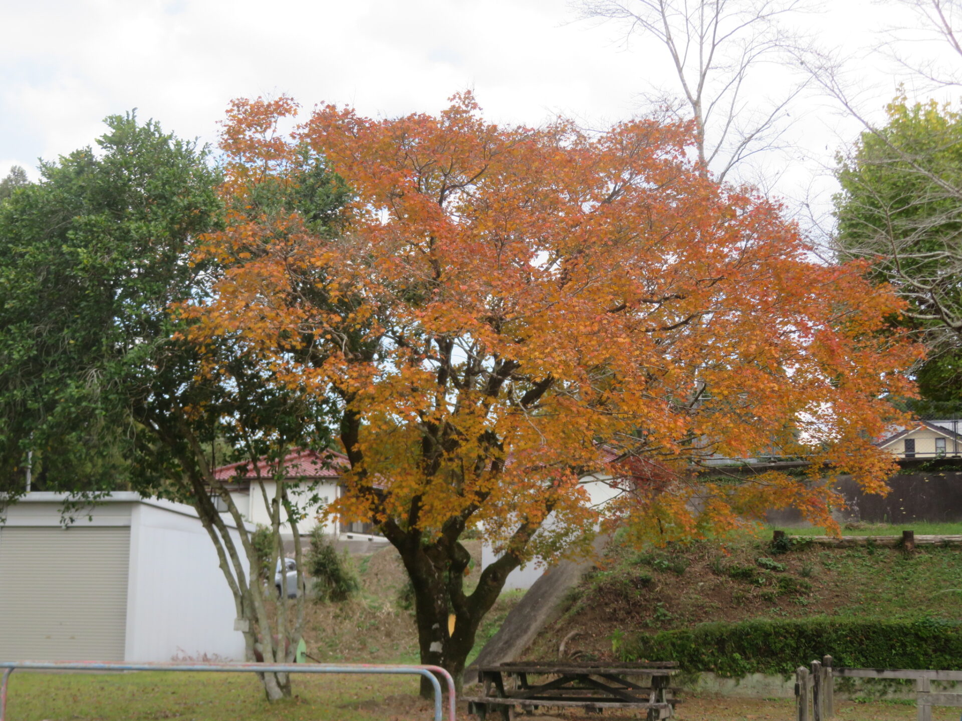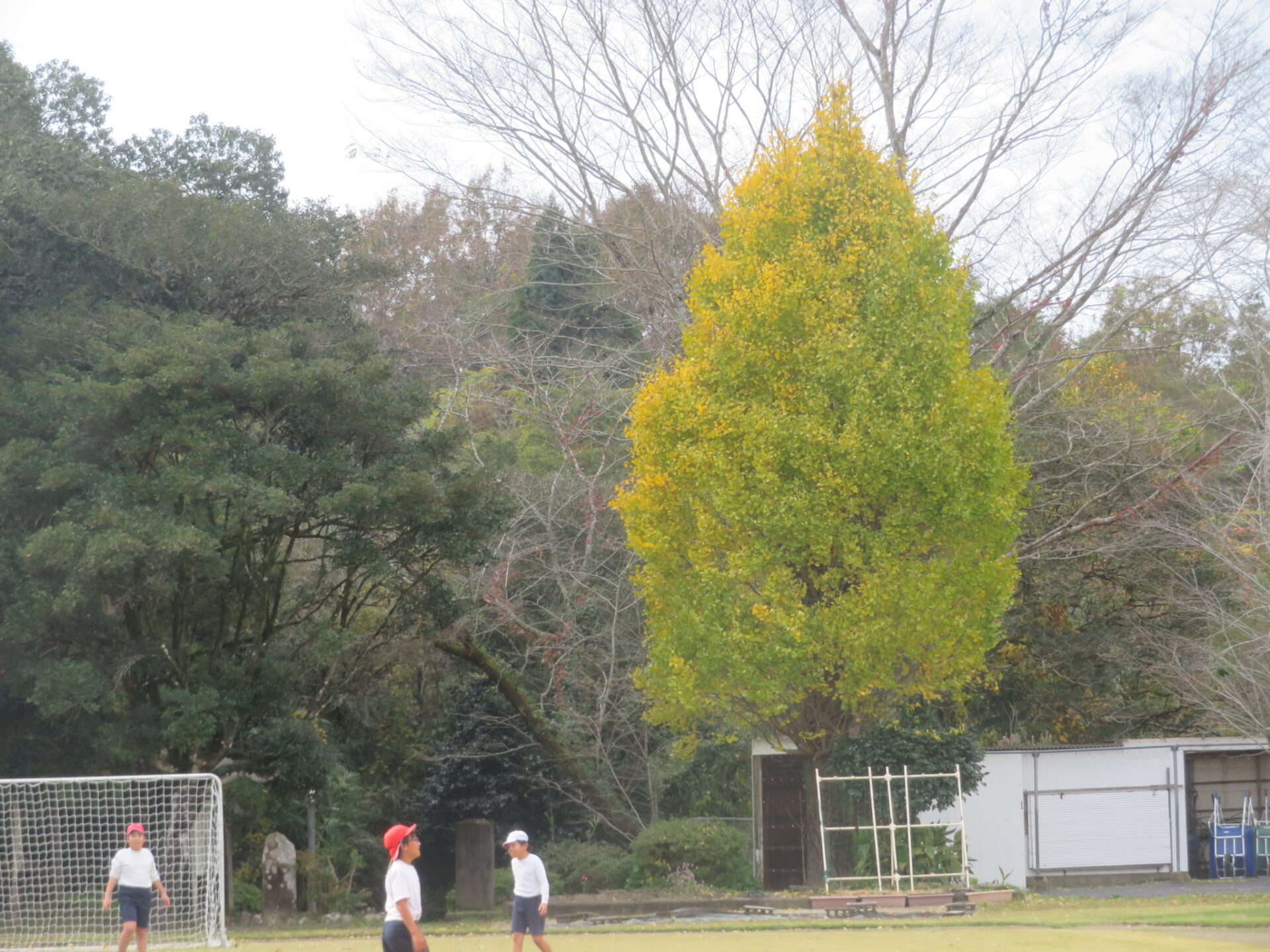 いつものことですが、昼休み、外で仲良く遊ぶ光景が広がっています。もみじが色づき、イチョウも黄色に変わりつつあります。