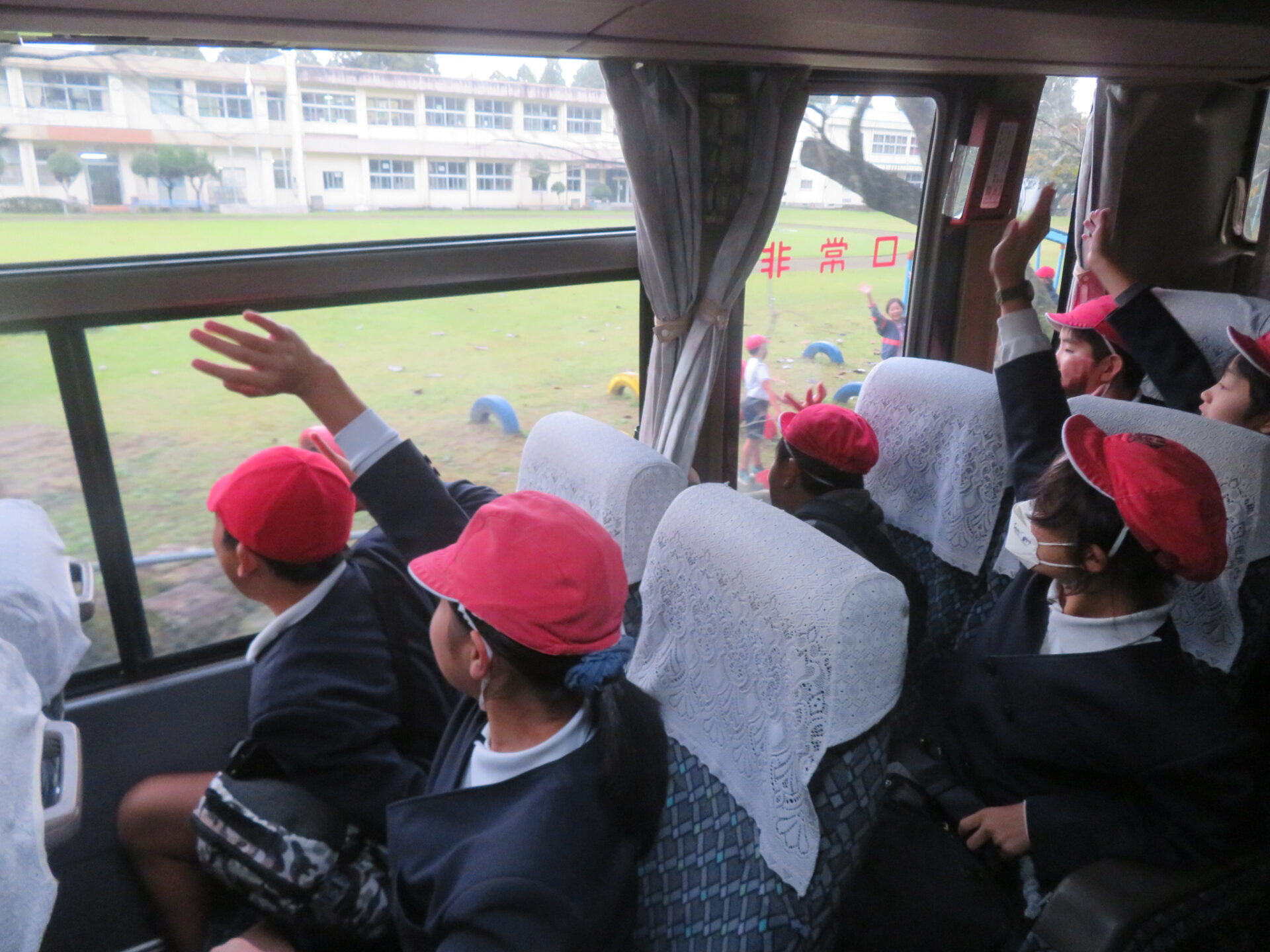5・6年生ビッグイベントである修学旅行がありました。多くの保護者の方に見送られ、学校を元気に出発しました。