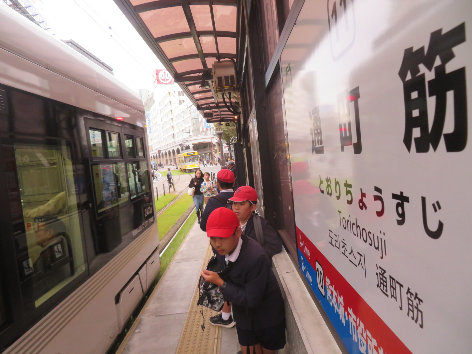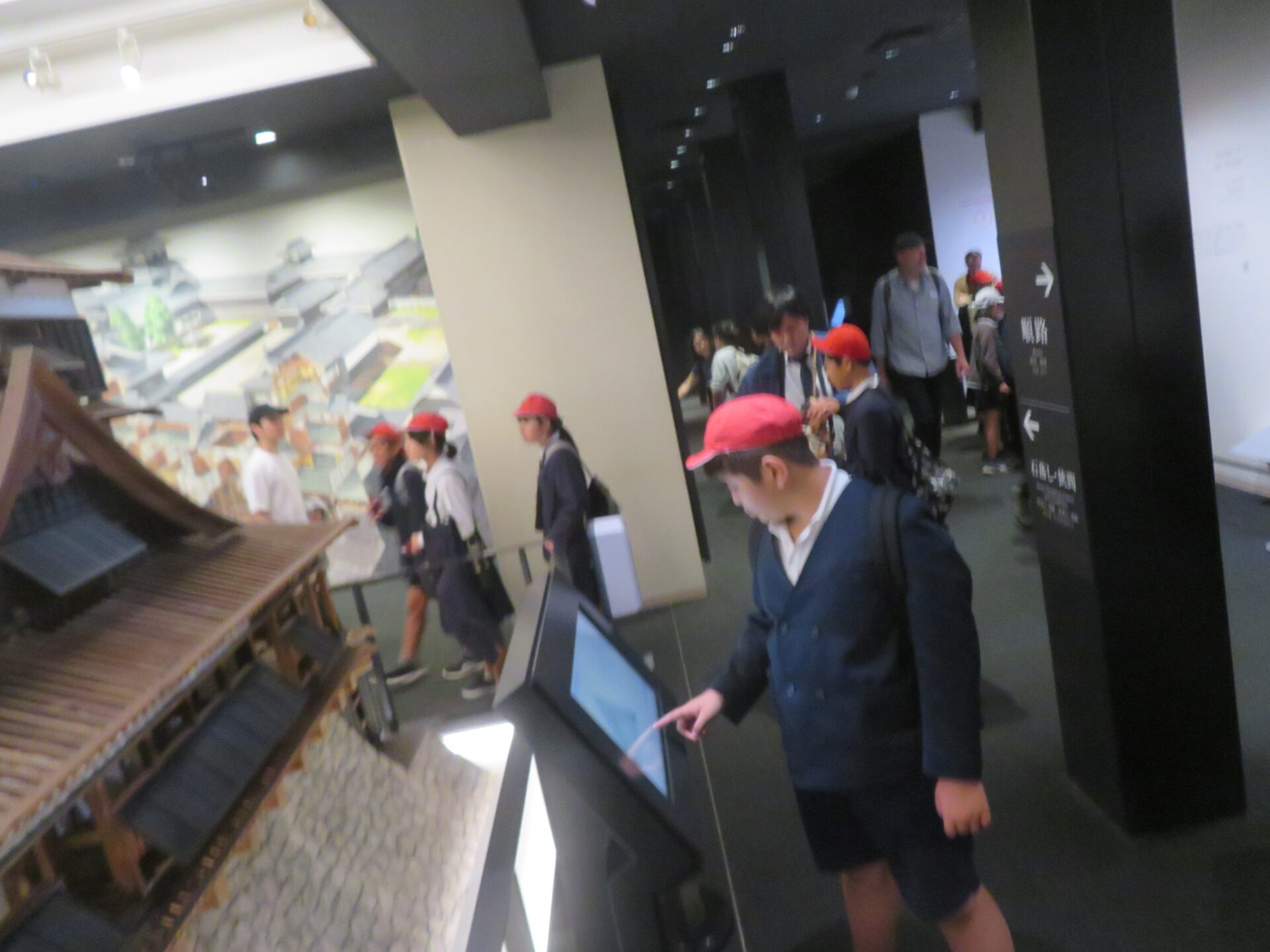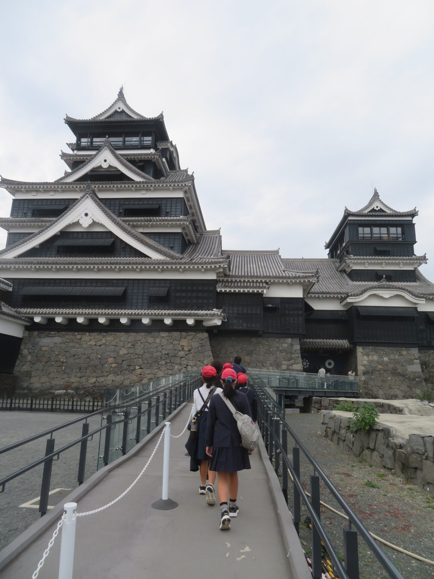到着した熊本城では、天守閣の中を見学し、武者返しや加藤清正、宮本武蔵について学びました。熊本地震の跡を感じる場所もまだまだありました。