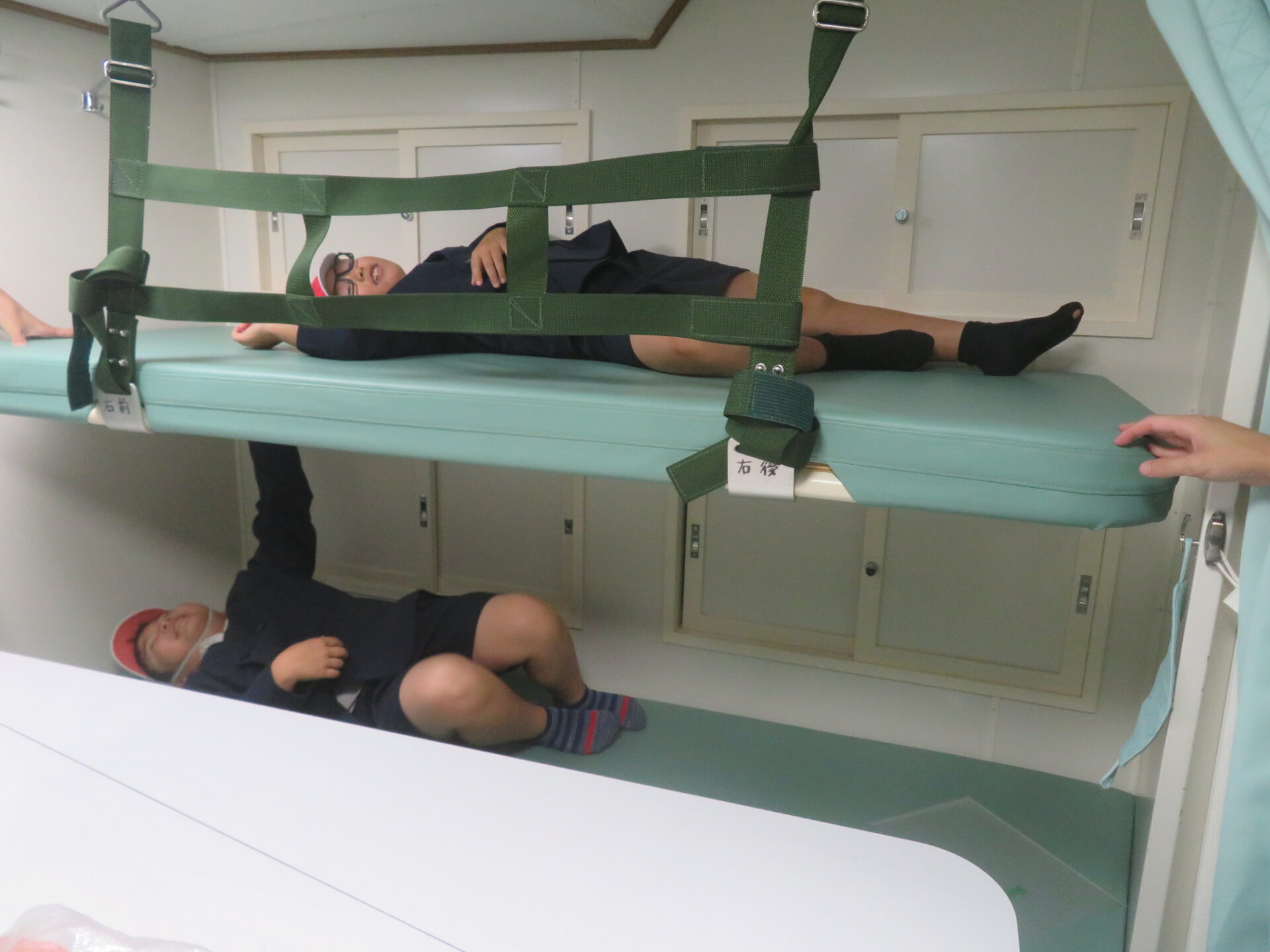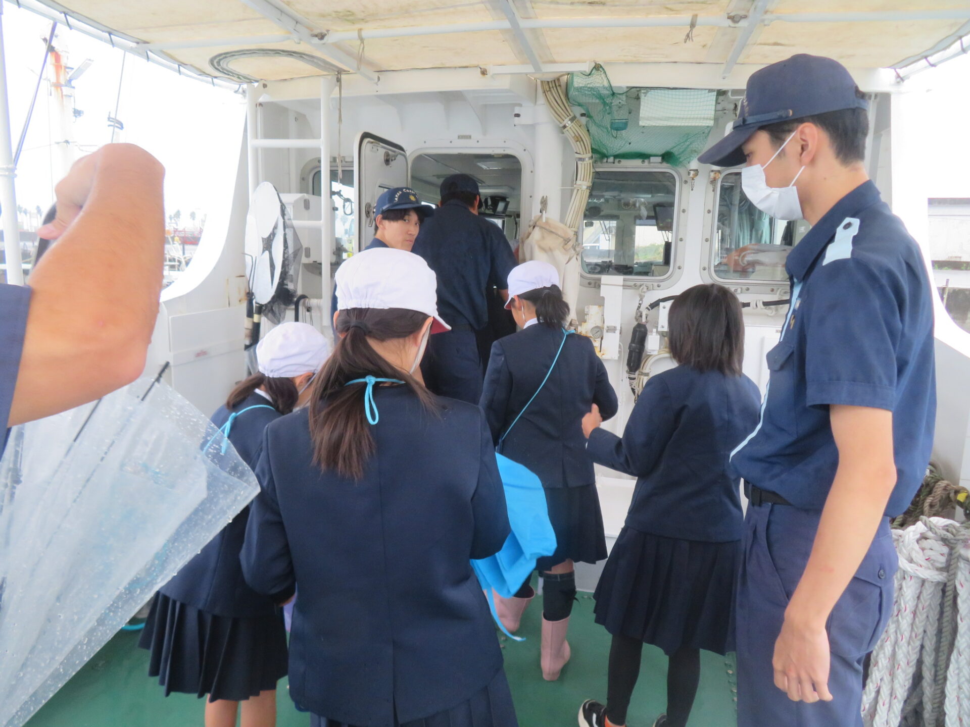 海上保安署では、海上保安庁の船の中に入らせてもらいました。操縦席やベッドに横になりました。海上保安庁のお仕事をする方がいるおかげで、私たちの海の安全が守られていることを学びました。