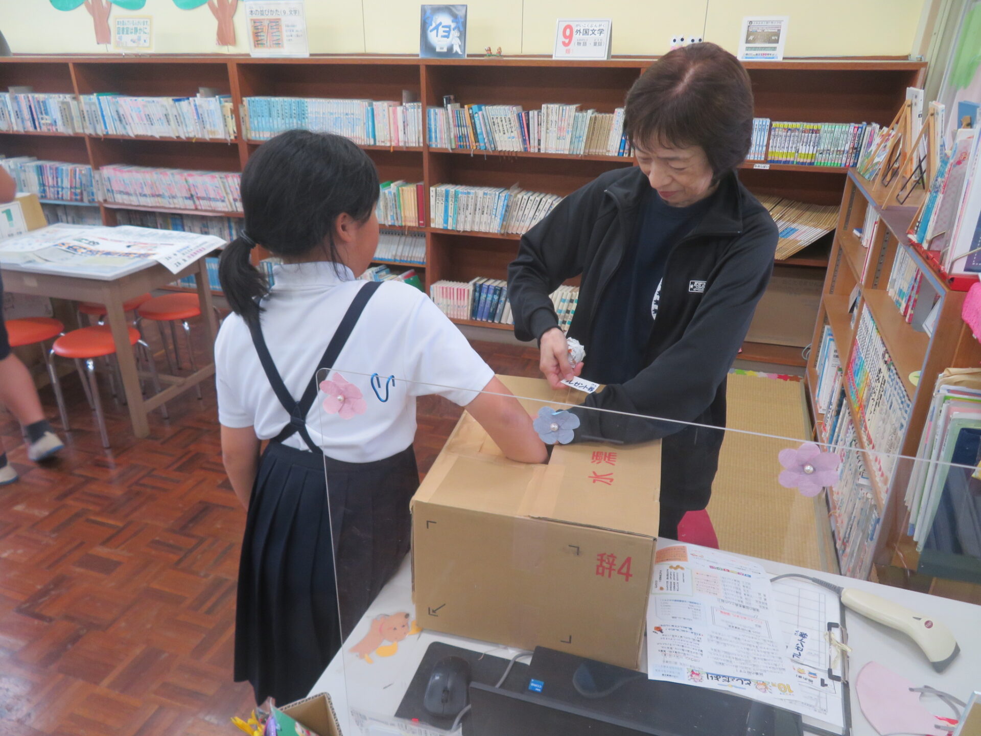 子どもたちはくじ引きをし、プレゼントを受け取りました。当たったプレゼントを嬉しそうに持ち帰っていました。潤ケ野小の図書室は楽しいイベントがたくさんです。
