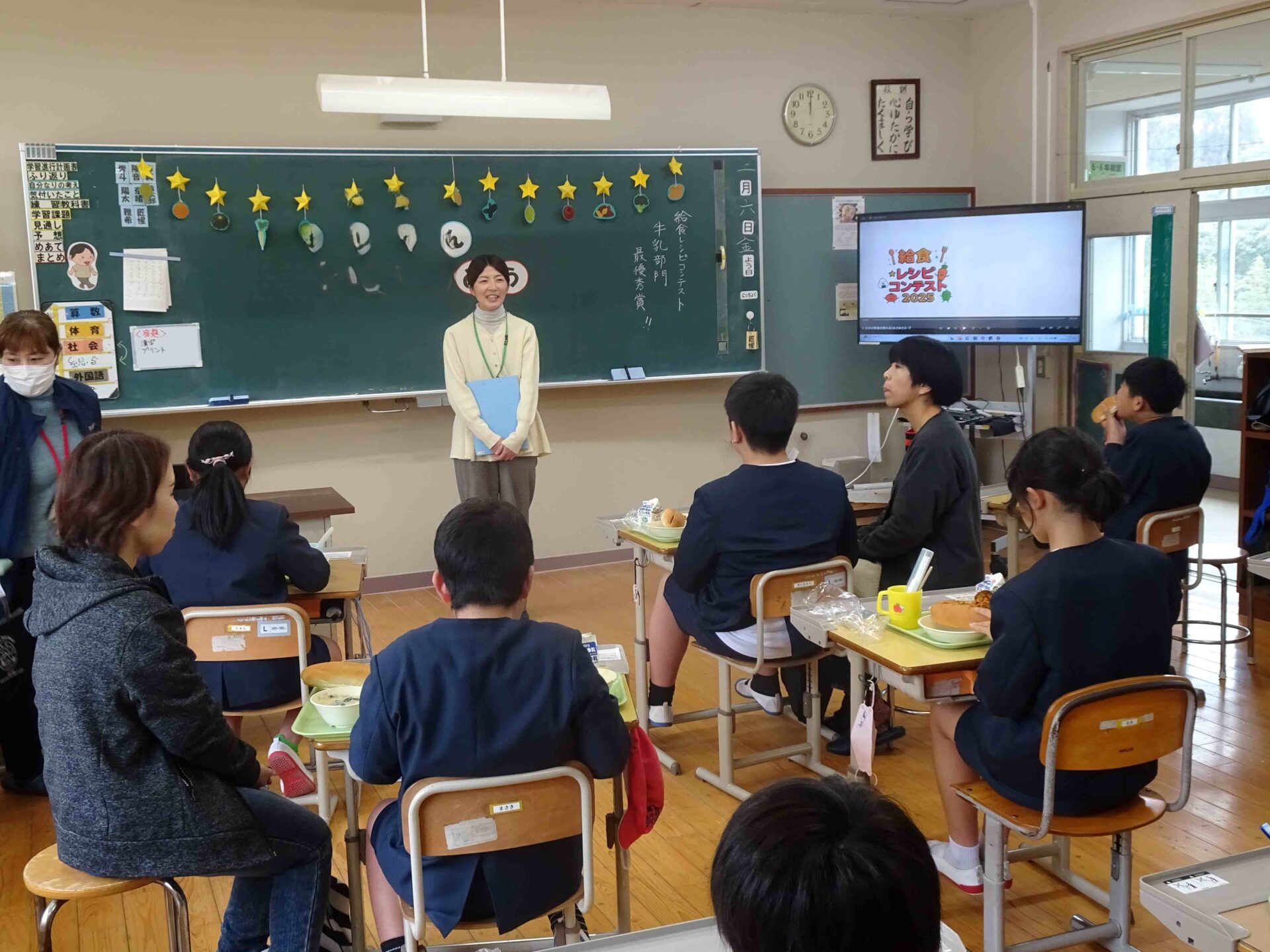 給食レシピコンテストで最優秀賞をとった本校6年生のレシピが給食で登場しました。「一日分の野菜を食べるミルク味噌スープ」はとてもおいしく、おかわりが続出しました