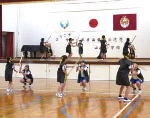 10月27日(日)のふるさとまつり山重」で披露する予定で練習していた棒踊りが,雨の影響でできなかったので,最初に棒踊りを披露しました。