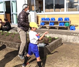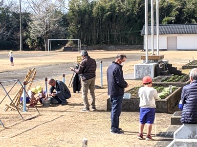 1/22 地域の方々との交流活動 作成者 yamashige admin公開日 2025年1月23日2025年1月23日 1年生の子供たちと地域の方々との交流活動を行いました。子供の遊びとしては,竹馬や竹とんぼ,竹鉄砲,ゴムとび,おはじき,あやとり等の懐かしい遊びを教えてもらいながら,子供たちとふれ合っていただきました。 子供たちの名前や顔を覚えてもらうことで,登下校中に声をかけてもらい,見守っていただくことにもつながっています。御協力いただいた皆様,ありがとうございました。