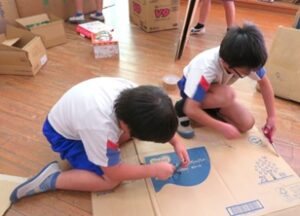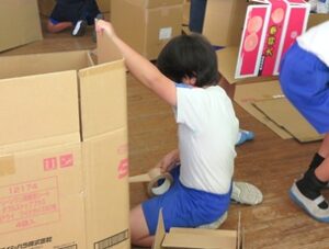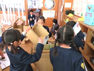 1/16 ダンボールに入ってみると 作成者 yamashige admin公開日 2026年1月16日 1・2年生の図工の学習で,ダンボールを使った学習を行いました。 みんな楽しみにしていたようで,活発に活動していました。この活動の中で,はさみの使い方を学習したり,想像しながら作り,イメージしたりする力も付けてほしいと思います。想像しながら何かを作る楽しみをもって,早く作りたくて待ちきれないという様子が伝わってきました。