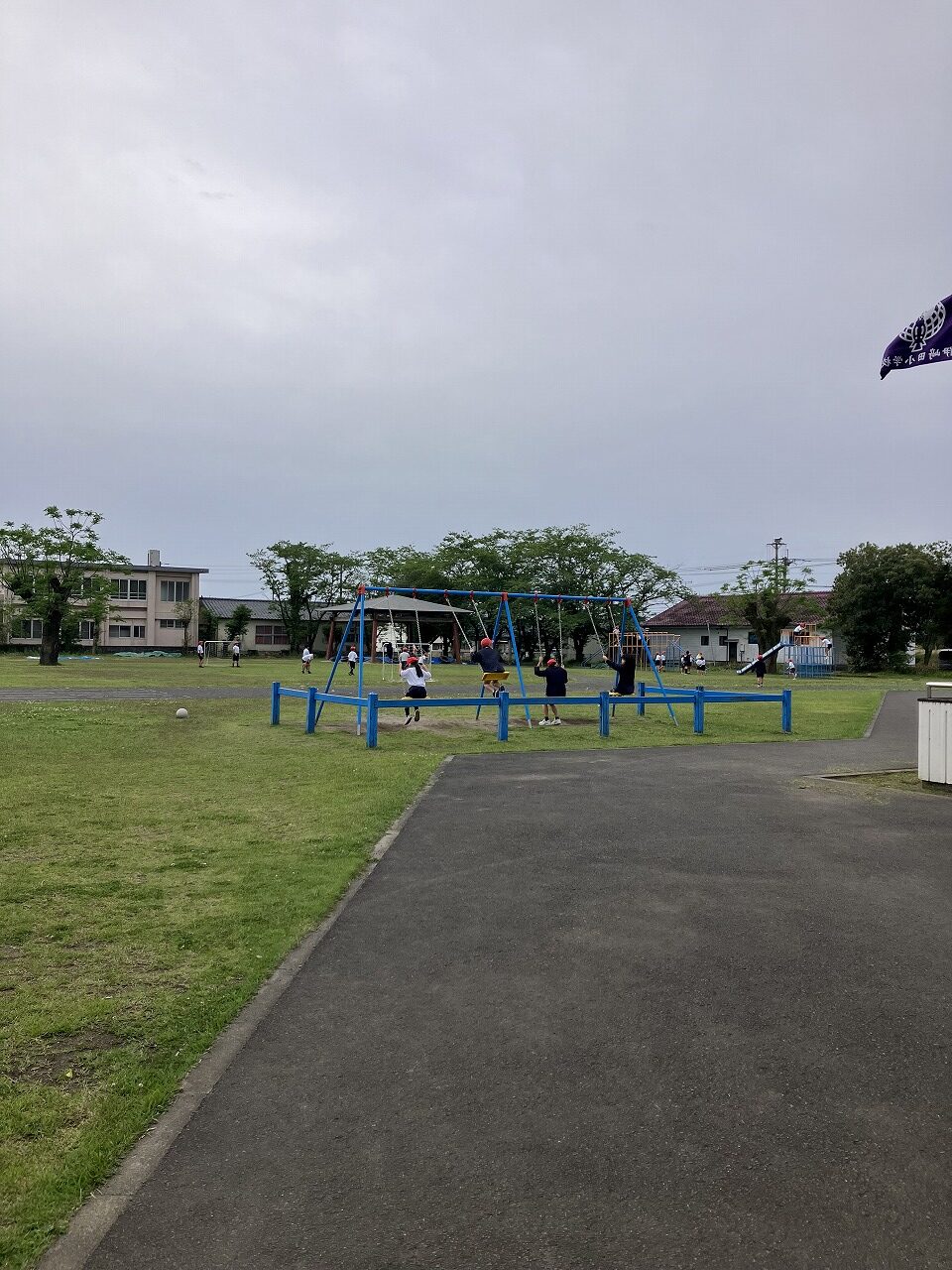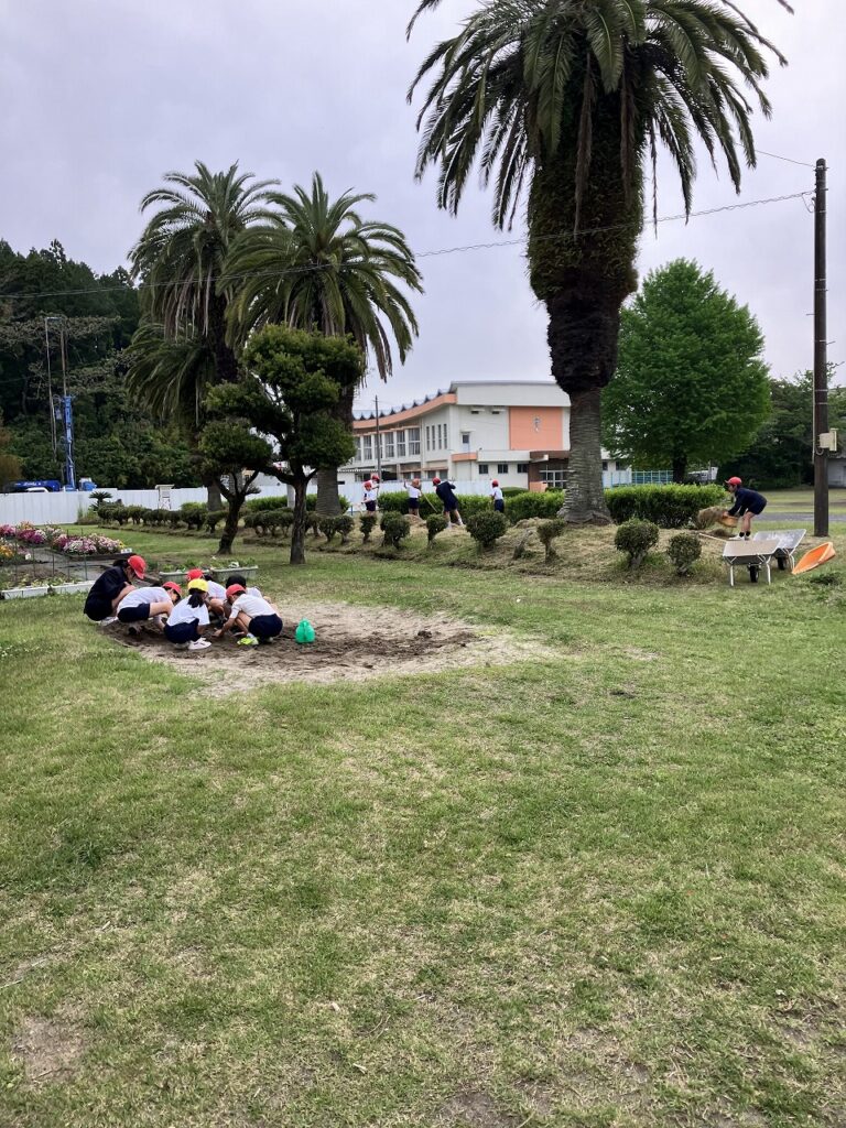 教室で過ごす子,ブランコで遊ぶ子,サッカーをする子,ジャングルジムで遊ぶ子,砂場で遊ぶ子,ボランティアで草を集める子,と本当に朝の過ごし方は,様々です。「自分で「選んで,決めて」います。そして,集団としてみるとほとんど全部が「異学年集団」です。学年に関わらず,いっしょになって遊んでいます。