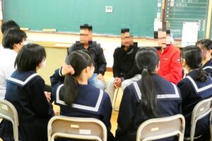 その後はグループに分かれ、気候や言葉、食文化などお互いの国の特徴について語り合い、生徒たちの多くが積極的にコミュニケーションをとっていました。