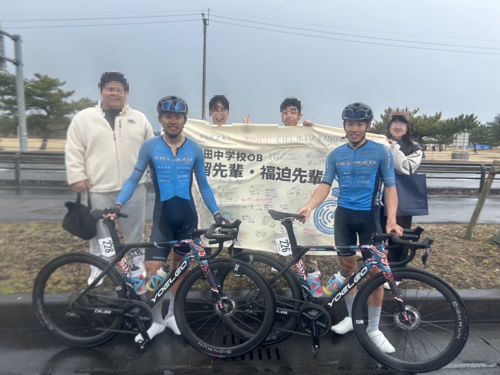 と、必死にペダルを漕ぐ極限の状態でも、後輩たちの想いは届いていたようで、この横断幕をつくって本当によかったと、立ち会った私たちも熱いものがこみ上げてきました。