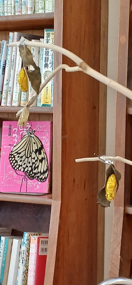 図書司書の先生がもらってきたオオゴマダラのサナギの一個体が今朝羽化しました。