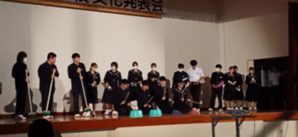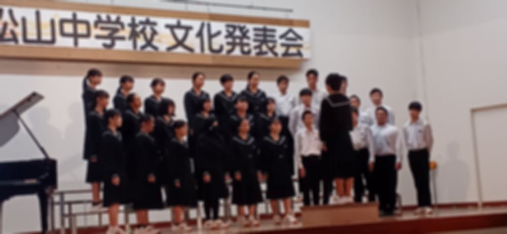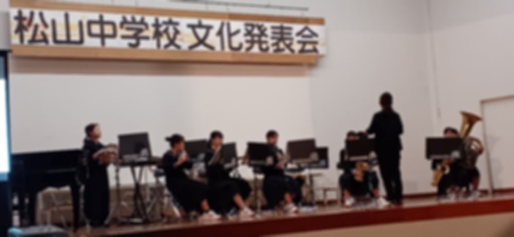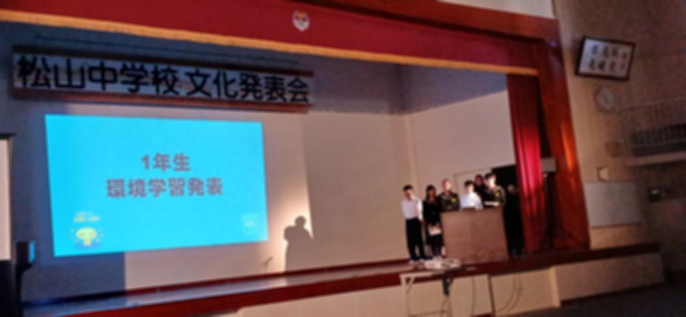 文化発表会 ステージ発表(午前) 作成者 matsuyamatyuu_admin公開日 2023年11月1日 11月1日、文化発表会が開催されました。吹奏楽部の演奏をスタートに各学年合唱、1年生の環境学習の発表、2年生のゲタップ&ストンプの舞台発表、3年生の劇、丼ぶりレシピ表彰とプログラムがありました。生徒たちは短い時間で効率よく準備をし、本番に臨みました。生徒同士の協力や信頼が存分に発揮された文化発表会でした。