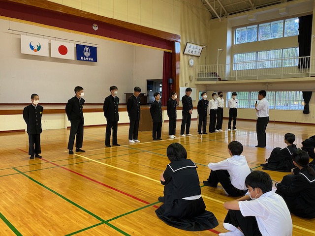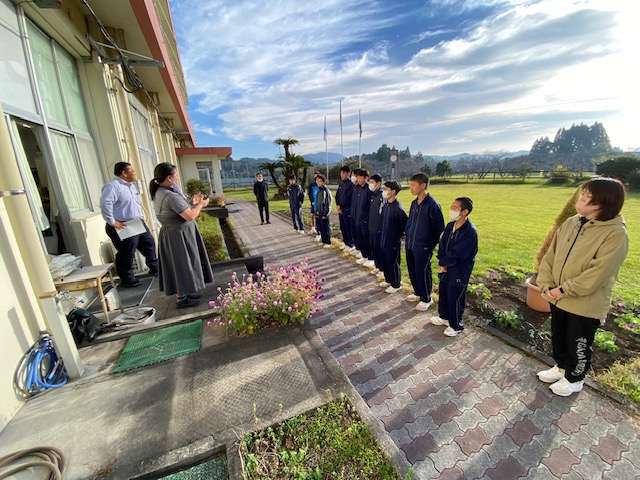 11月9日木曜日に指宿市営陸上競技場で行われる県駅伝大会に向けて、本日8日、男子チームが出発しました。11月7日の全校朝会では推戴式を行い、代表としてキャプテンが意気込みを表明しました。