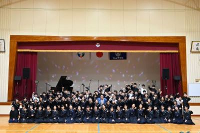 宮井紀行さん ライブ!! 作成者 matsuyamatyuu_admin公開日 2023年12月15日 今日は楽しみにしていた宮井紀行さんのライブがありました。 宮井紀行さんは鹿児島を拠点に活躍されているシンガーソングライターです。 このたび、縁があって志布志市内の学校を訪問されています。 ライブは最初のうちは中学生のせいか、遠慮しがちな反応でしたが、「焼酎フィーバー」あたりから生徒も元気よく踊ったり歌ったりして宮井さんと一緒に楽しみました。 ライブの後は一緒に記念撮影もしていただき、生徒にとって最高のプレゼントとなりました。 宮井さん ありがとうございました。また、志布志に来てください!!。