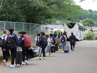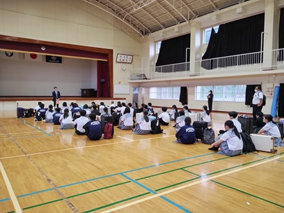 修学旅行(出発しました) 作成者 matsuyamatyuu_admin公開日 2025年5月26日 朝早くからの集合,出発に御協力頂きありがとうございました。 体育館での出発式を終え,無事出発していきました。 体調不良者もなく,3日間の修学旅行のスタートが切れました。