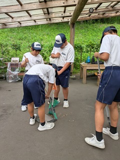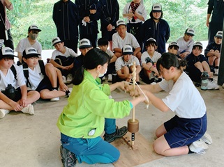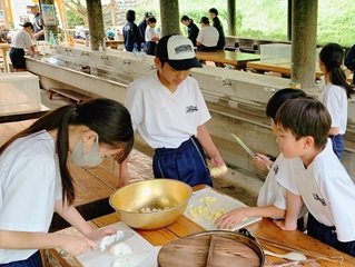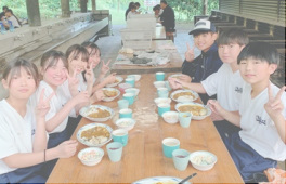 宿泊学習(1日目)③ 作成者 matsuyamatyuu_admin公開日 2025年5月27日 午後からの活動は,まず火起こし体験からです。この火起こしが上手くいかないと夕食の準備に差し障る?!指導員さんの話をよく聞いて,後半は火起こしが短時間にできるようになりました。 そして,いよいよ夕食作り(カレー)です。おうちでの手伝いが生かされているのか,みんな手際よく進められました。協力できたのが一番のスパイスだったのかもしれません。いつもより食欲がわいた人もいましたね。