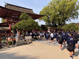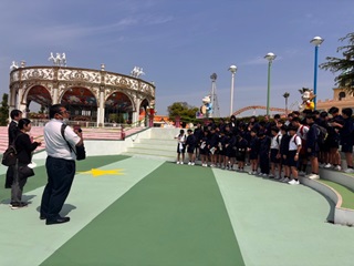修学旅行(最終日)② 作成者 matsuyamatyuu_admin公開日 2025年5月28日 太宰府天満宮は,学問の神様である菅原道真さんが祀られています。来年度のことも考えて,しっかりお参りできたでしょうか。 後半は,グリーンランド入り口付近での集合写真撮影前のワンショットです。お楽しみは,これからですね。