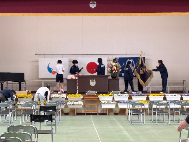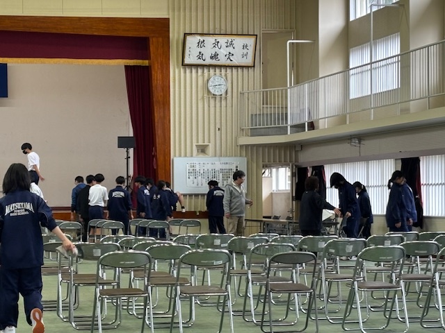 前日は在校生が心をこめて会場を準備し、清掃を隅々まで行って先輩方を気持ちよく送り出そうと一生懸命に取り組みました。