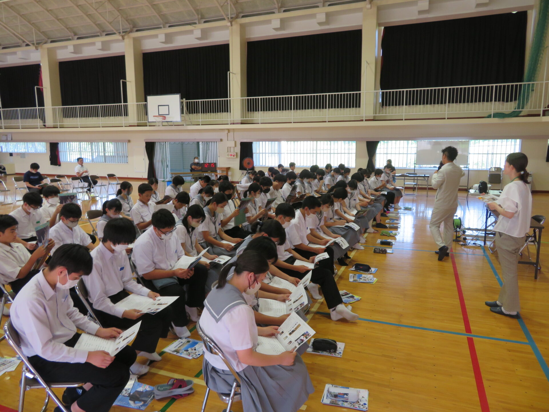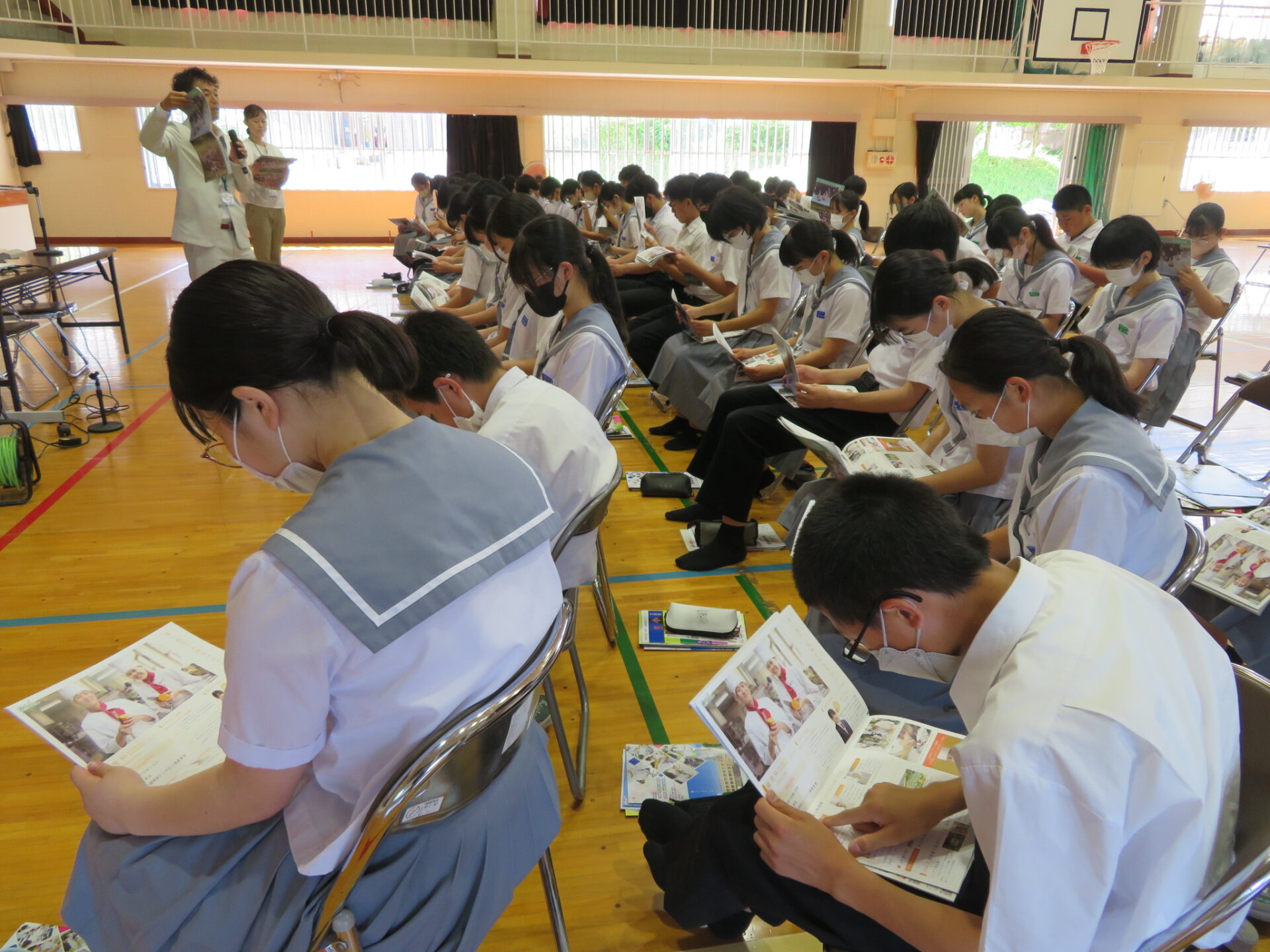 各高校の教育活動や特色を詳しく説明していただき,生徒たちは熱心に聞き入っていました。また,各高校から配布されたパンフレットや資料を熟読したり,話を聞いてメモをとる姿も見られました。