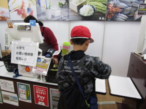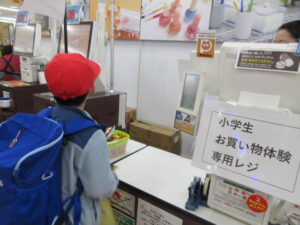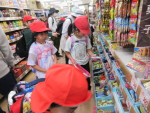 お買い物スタートです。400円という予算で、好きなお菓子を買います。