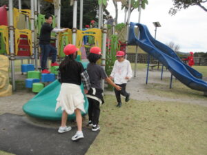 お弁当を食べたあとは、広場や遊具で遊びました。やっぱり、定番のおにごっこが盛り上がりました。