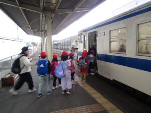 3月6日(金)、お別れ遠足を行いました。今年の遠足は、JR日南線を利用して、串間市まで行ってきました。目的は、①JRに乗ること、②串間の大型スーパーでおやつのお買い物、③運動公園で楽しむことです。初めての試みでしたが、多くの皆さんのおかげで、大成功でした。子どもたちの笑顔をどうぞご覧ください。